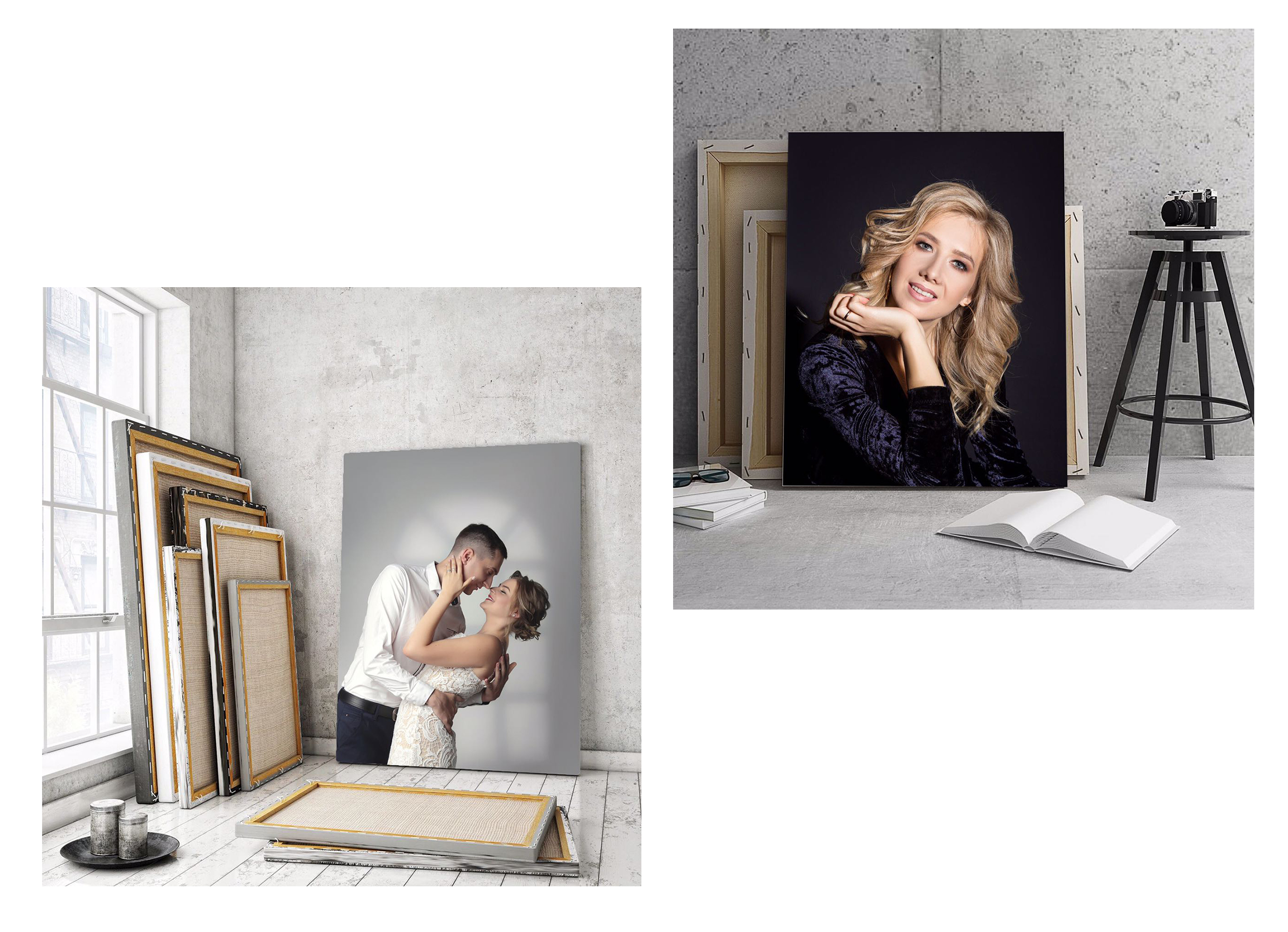 - Изготовление фотопортретов. Отпечатанное на холсте и обрамленное багетом фото — удачный выбор подарка на юбилей, свадьбу, другую памятную дату. Это нетривиальное решение, как говорится, на года.
