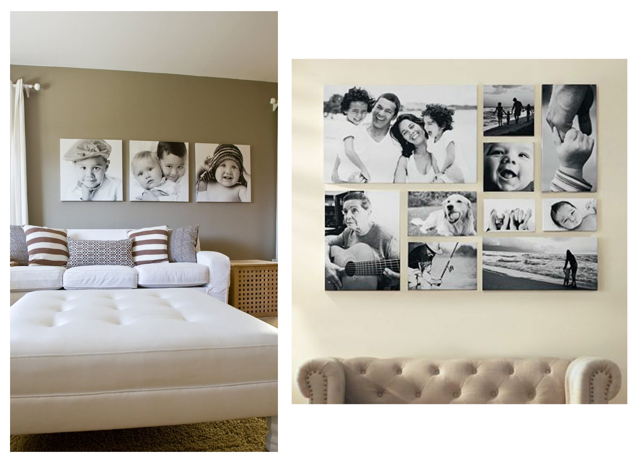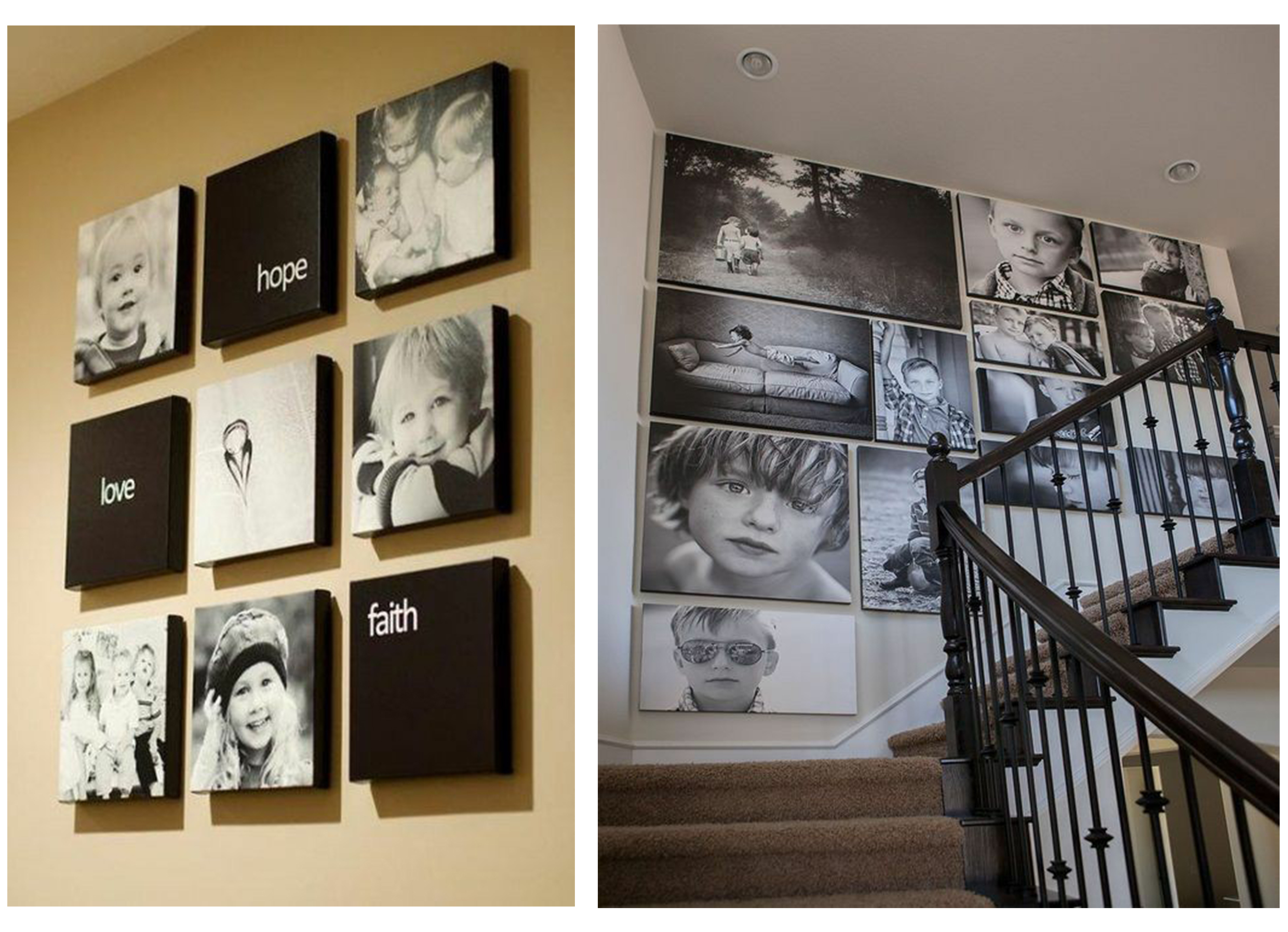 - Фотостена. Выйти за рамки одного холста и разместить несколько любимых фото на стене.