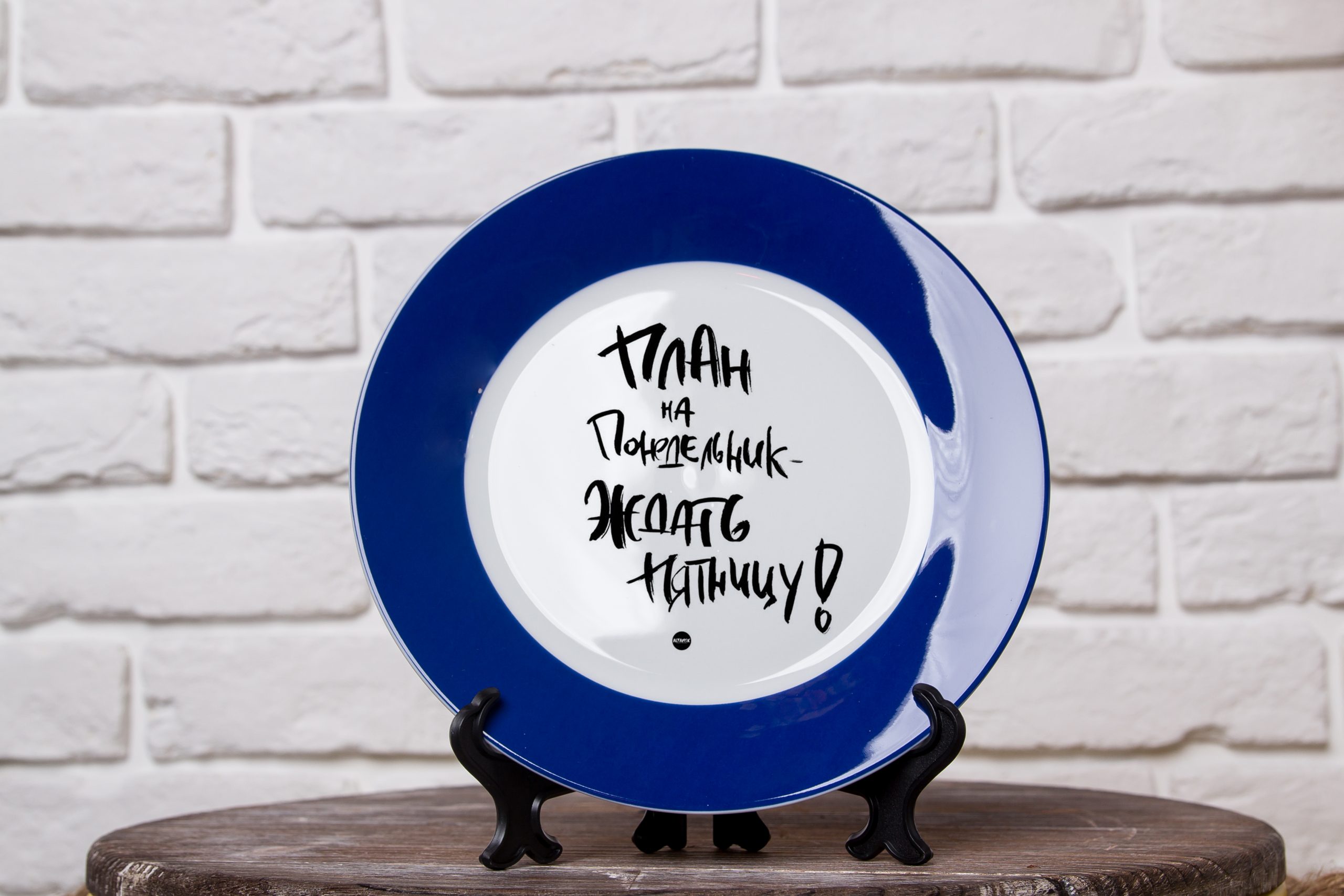 У нас есть тарелки маленькие и чуть побольше. Мы можем предложить вам как множество готовых вариантов дизайна, так и создать свой дизайн.