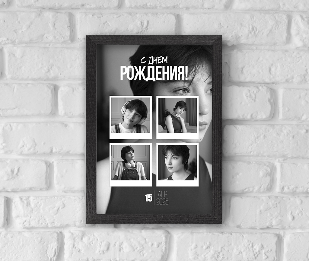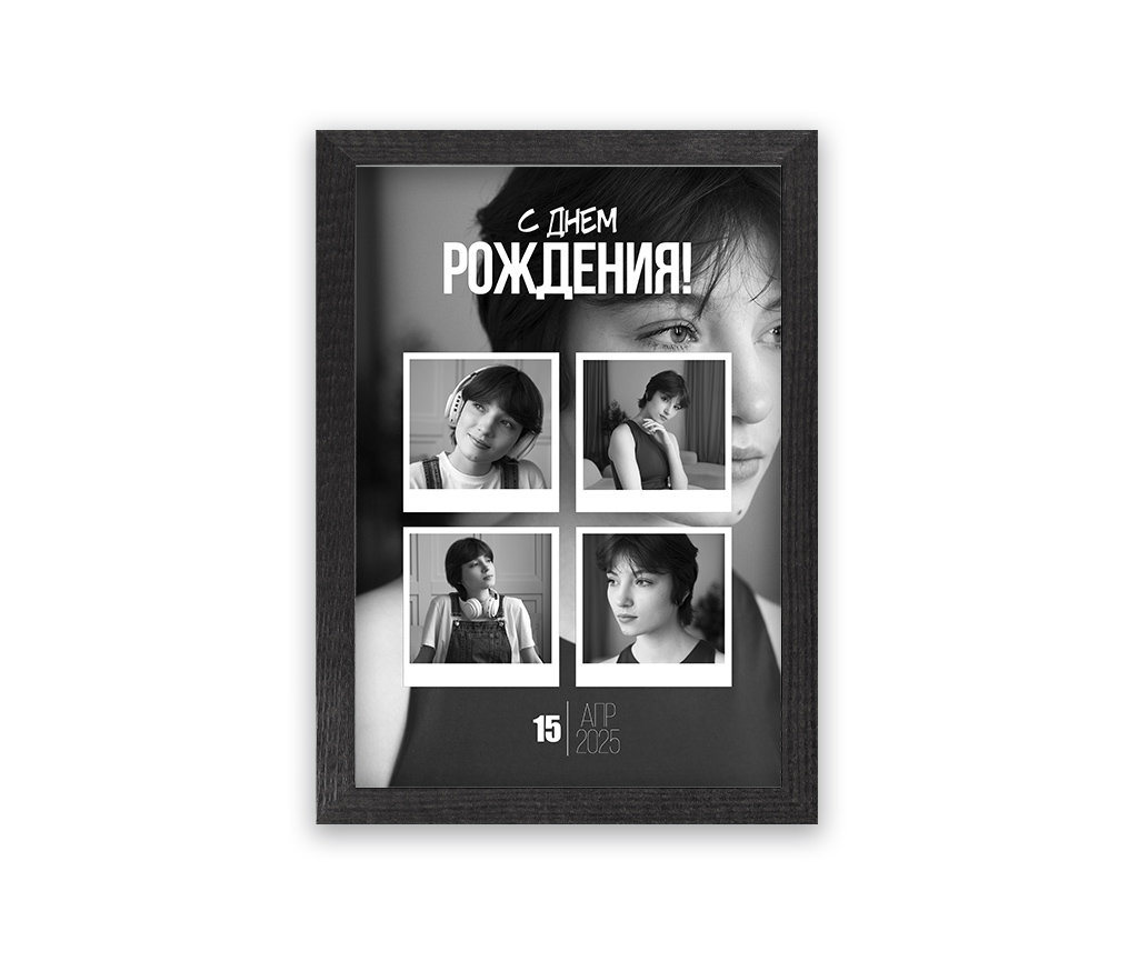 Фоторамка со стильным коллажем в который вы можете поместить фото своего любимого человека и сделать ему приятный подарок ко Дню Рождения!