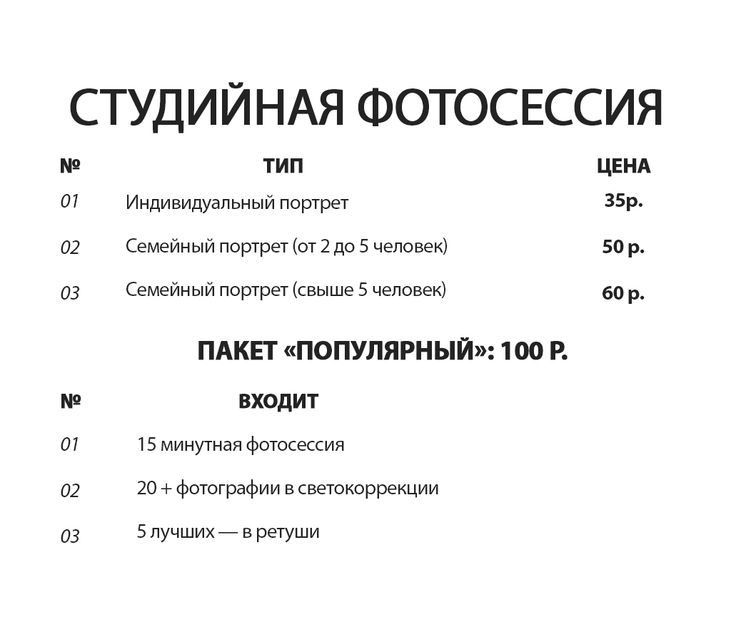 Семейный портрет — 60 руб. (свыше 5 человек).